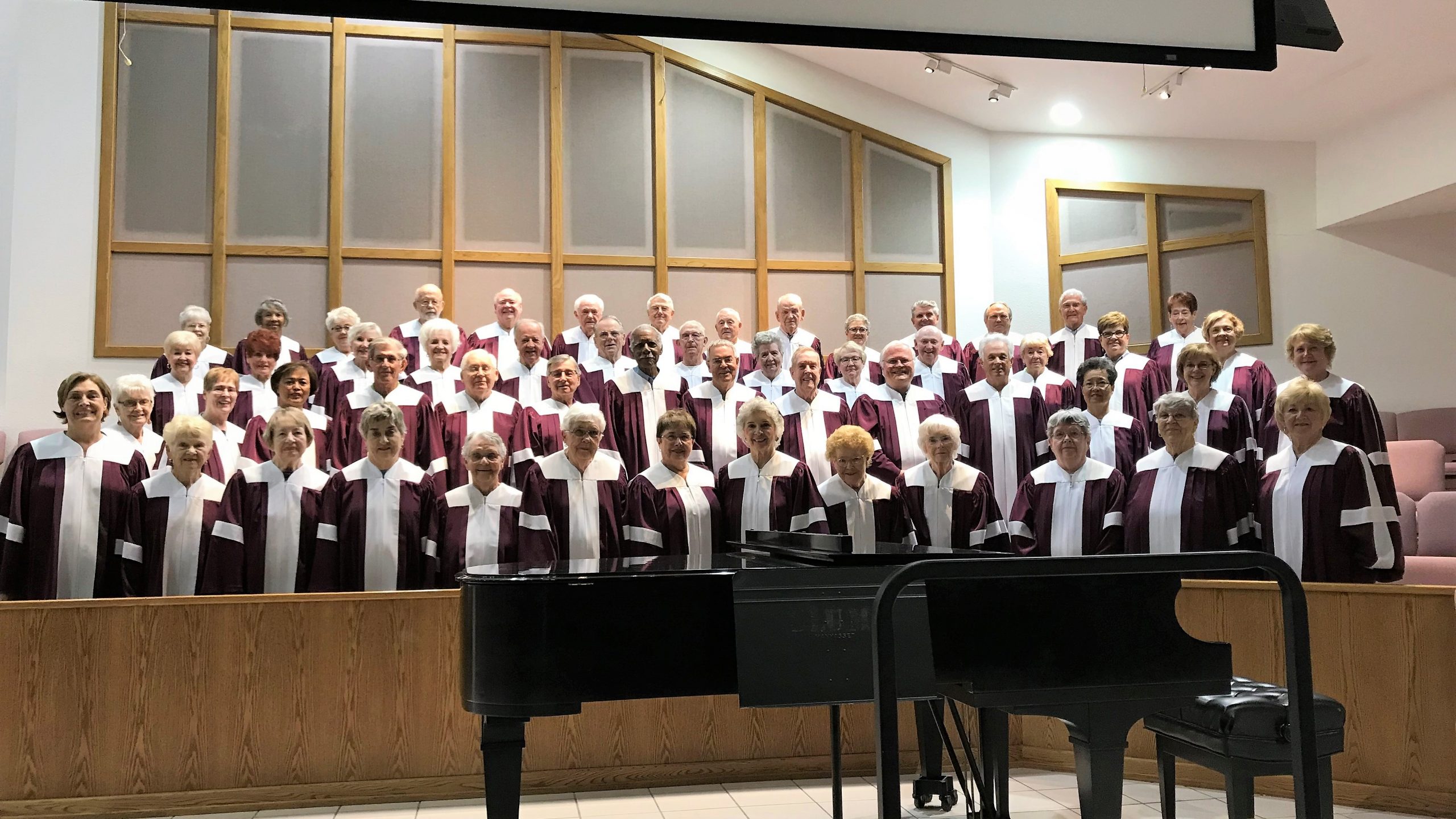 Singing during Sunday worship services, the choir prepares special music for Veteran’s Day, Christmas Eve, Good Friday, Palm Sunday and Easter to share with the congregation and the community. The choir prepares a larger choral work with an instrumental ensemble each year for Christmas.
